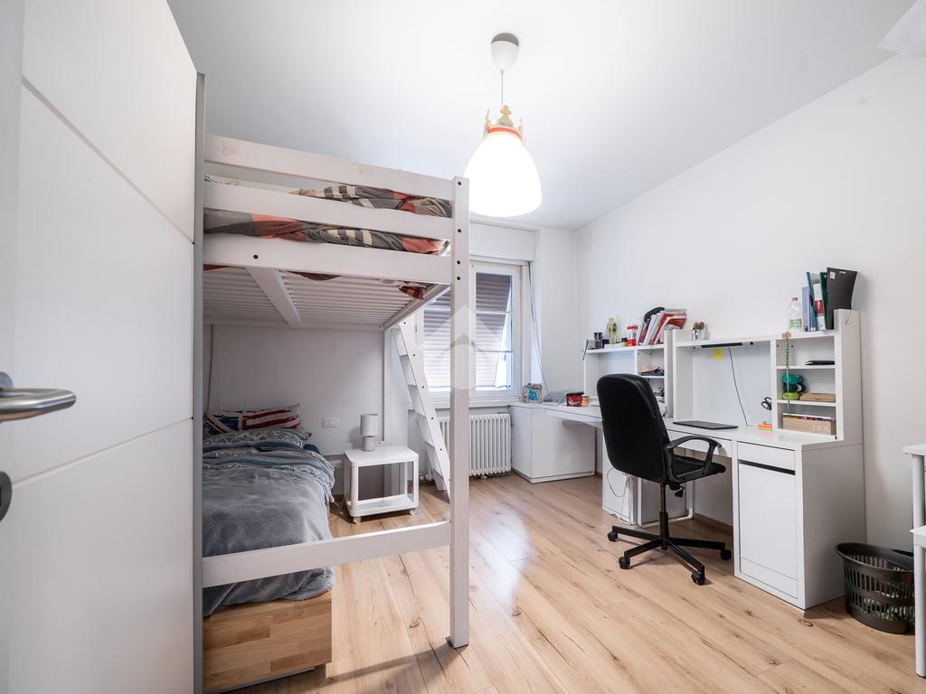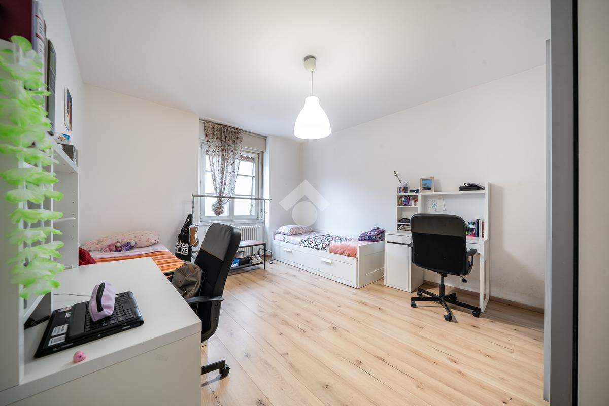 Le camere da letto sono caratterizzate da generose metrature, tutte e tre matrimoniali ben esposte. L'appartamento gode di doppi servizi, entrambi curati nei dettagli, di cui uno finestrato.