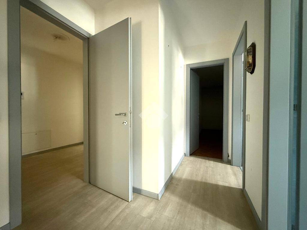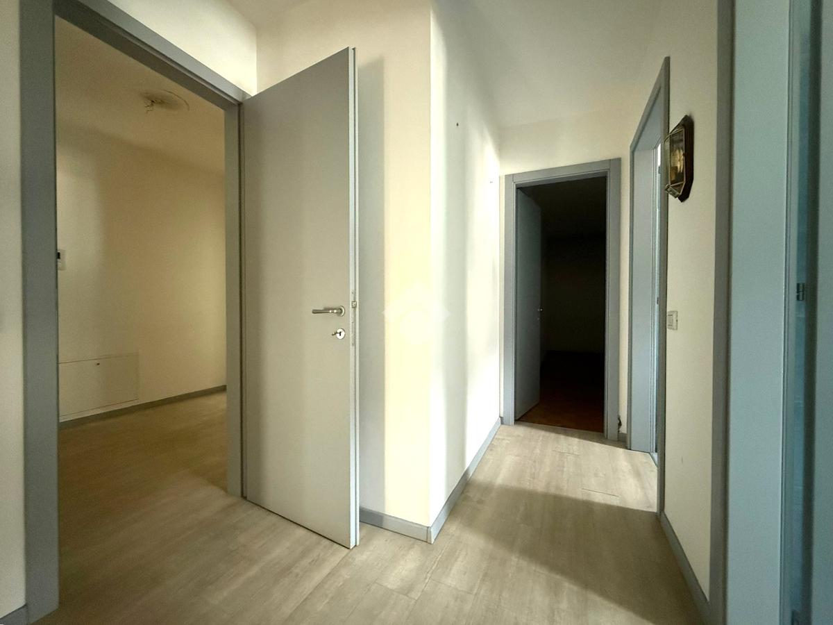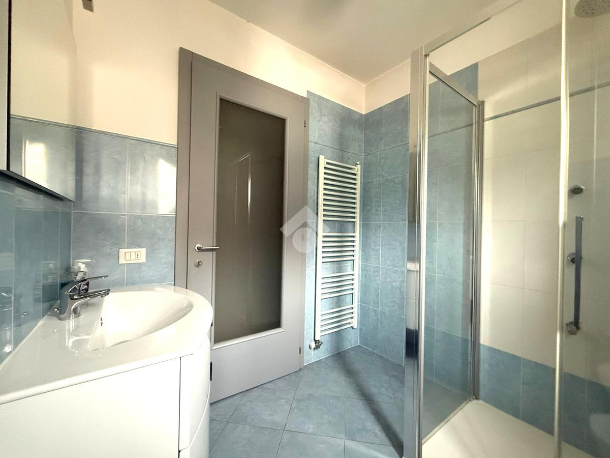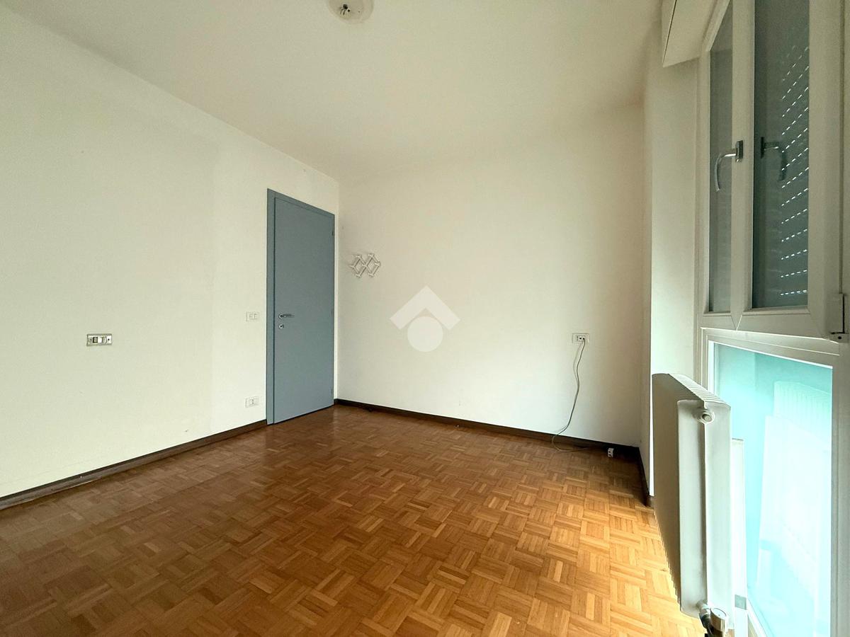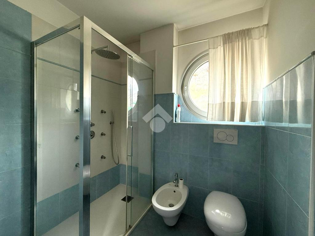 La zona notte è composta da tre spaziose camere: due singole e una matrimoniale, quest’ultima con accesso a un secondo balcone esposto a nord-ovest. L’immobile dispone di doppi servizi: un bagno principale finestrato, completo di ampio box doccia e un bagno di servizio anch’esso finestrato.