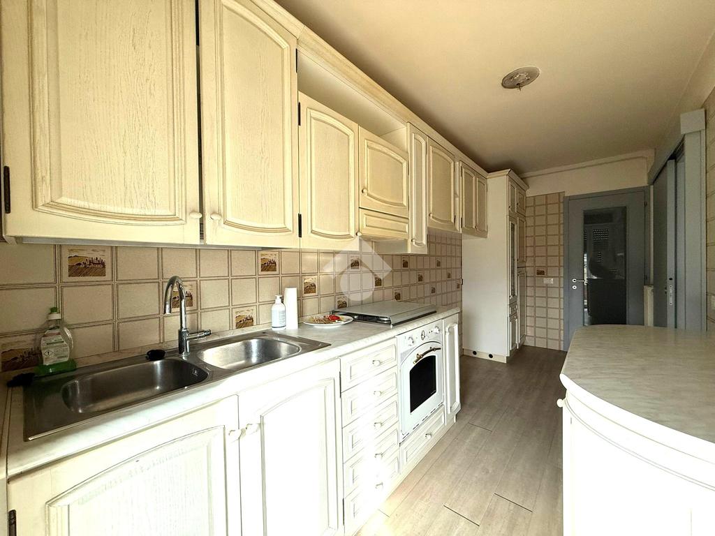 La zona giorno è caratterizzata da un ampio soggiorno, luminoso e accogliente, con accesso diretto a un balcone spazioso esposto a sud-est. Comodamente collegata si trova la cucina abitabile, sviluppata in lunghezza e anch’essa dotata di accesso allo stesso balcone.